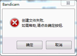 当 Bandicam 无法保存录制文件时,则会出现 “创建文件失败。如需帮助,请点击确定按钮” 的错误报告。